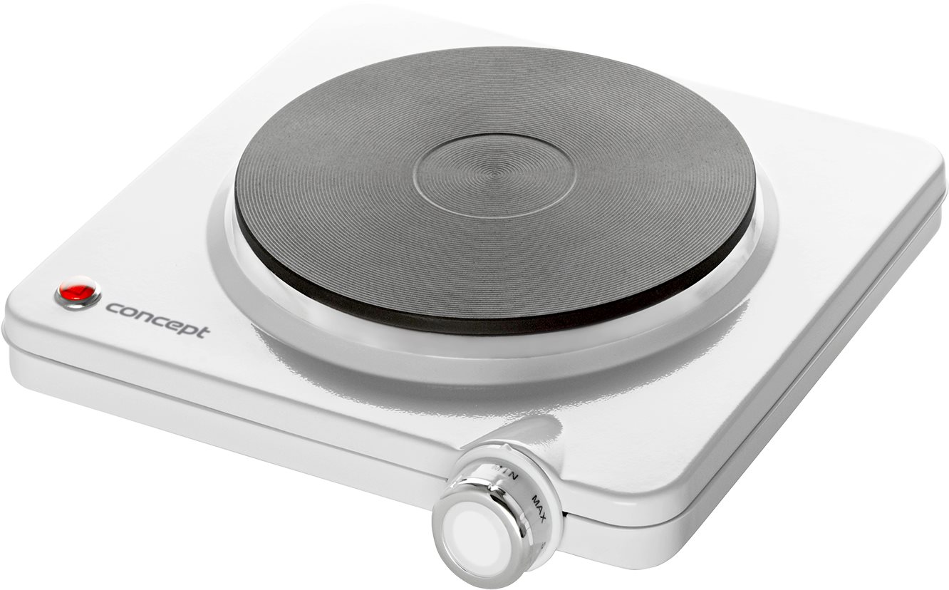 Elektrický varič s príkonom 1500 W, počet platničiek 1, priemer platne 18 cm, termostat a svetelný indikátor prevádzky, rozmery 28 cm × 27 cm × 7,5 cm, farba biela Elektrický jednoplatničkový varič Concept VE3015 s príkonom 1 500 W ponúka 5 stupňov regulácie výkonu. Jednoducho sa ovláda a je ideálnou voľbou na chatu, chalupu alebo koľaj. Vďaka nízkej hmotnosti