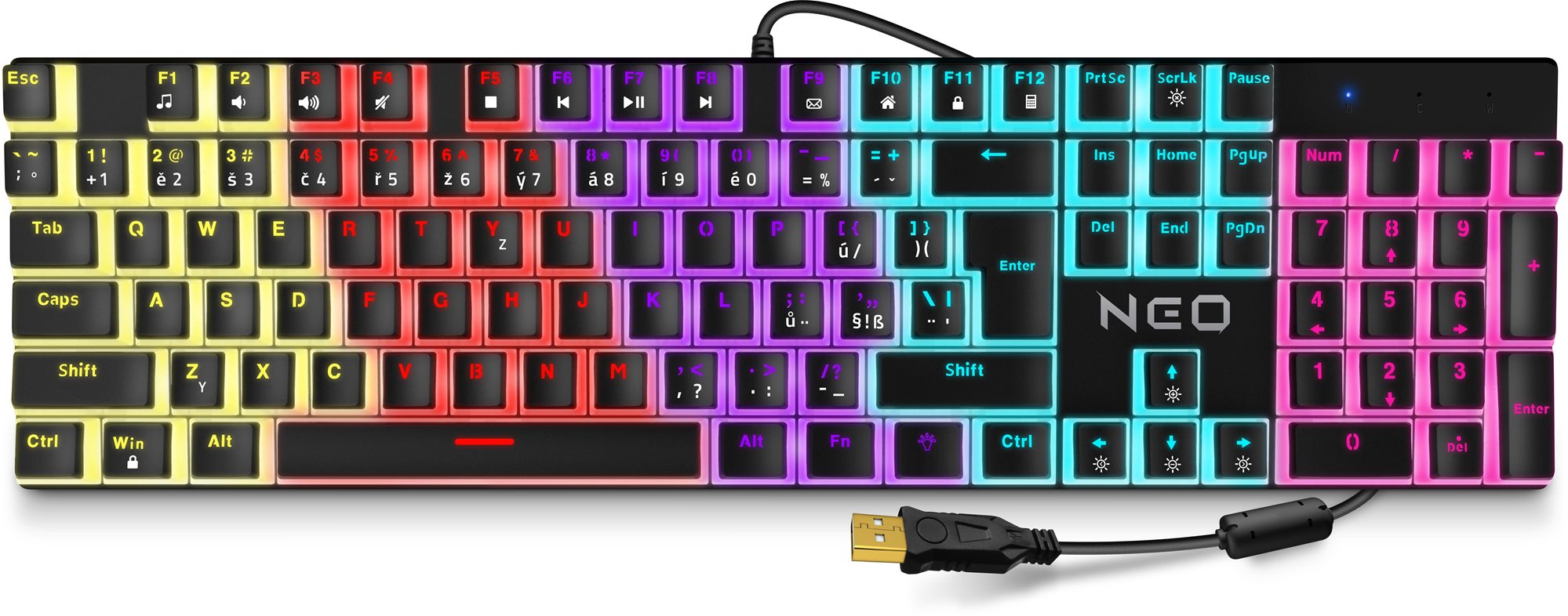 Herná klávesnica – mechanický spínač, drôtová, podsvietená, klasické (vysokoprofilové) klávesy, česká lokalizácia klávesov, USB-A, čierna farba, rozmery 3,8 × 42,3 × 11,8 cm (V׊×H) Mechanickú klávesnicu CONECT IT NEO Pudding ocenia všetci hráčiTúžite po skvelej hernej klávesnici, ktorá ponúkne aj niečo navyše? Predstavujeme vám vypracovanú klávesnicu CONNECT IT NEO Pudding vhodn