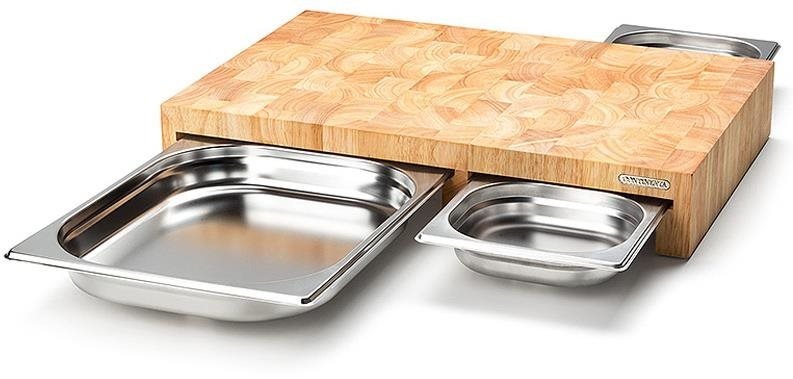 Continenta doštička na krájanie s 3 zásuvkami, gumovník, 50 × 32,5 × 8,5 cm