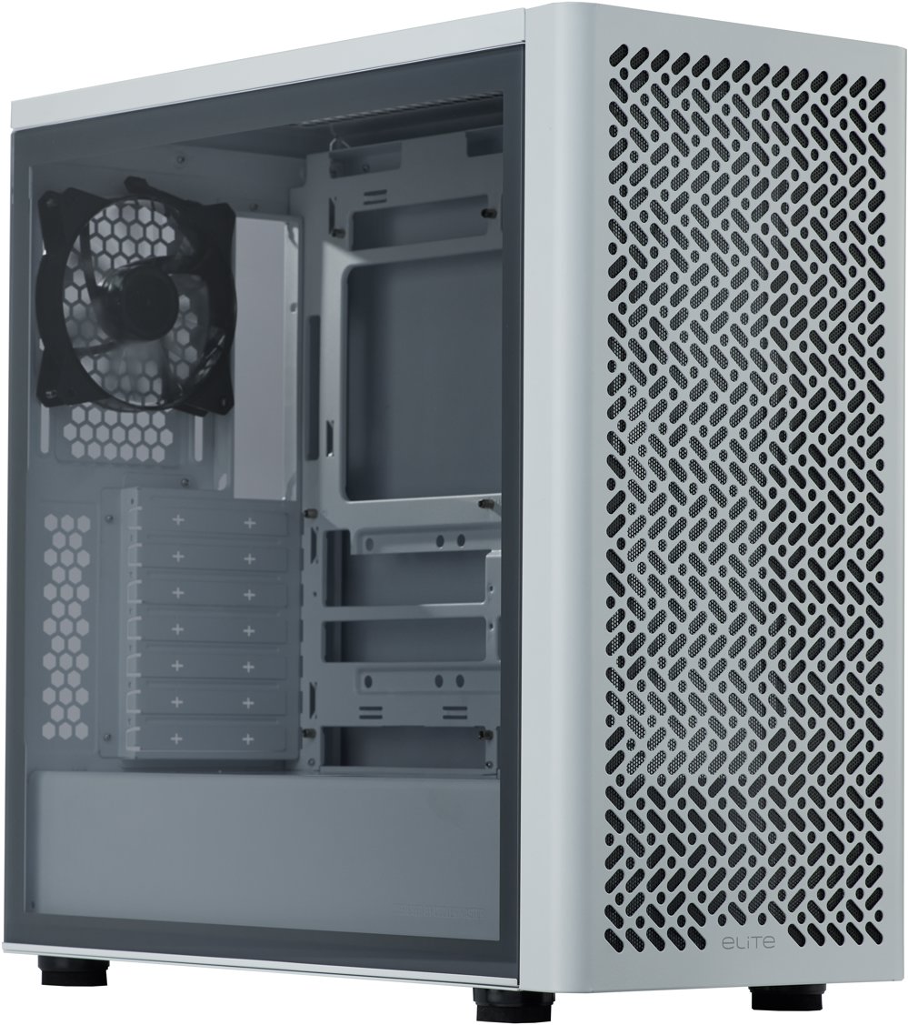 PC skrinka – ATX, mATX (Micro ATX) a mITX (Mini ITX), 2× 3,5″, 2× 2,5″, Konektory predného panelu USB 3.2 Gen 1, USB-C a 3,5 mm Jack (mikrofón/slúchadlá), počet predinštalovaných ventilátorov 1× 120 mm, max. výška chladiča 170 mm, max. dĺžka grafickej karty 410 mm, bez zdroja, materiál bočnice temperované sklo, bez podsvietenia PC skrinka Cooler Master Elite 502 White Lite s veľkosťou Midi Tower prináša vychytané vyhotovenie, ktorému dopomáha čierna farba. Tá je použitá na oceľovej konštrukcii. Formát konštrukcie Midi Tower