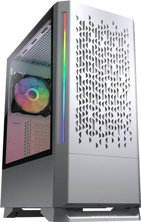 PC skrinka – ATX, mATX (Micro ATX) a mITX (Mini ITX), 2× 3,5″, 3× 2,5″, Konektory predného panelu USB 2.0, USB 3.2 Gen 1, 3,5 mm Jack (slúchadlá) a 3,5 mm Jack (mikrofón), počet predinštalovaných ventilátorov 3× 120 mm, max. výška chladiča 175 mm, max. dĺžka grafickej karty 320 mm, bez zdroja, materiál bočnice temperované sklo, ARGB farba podsvietenia PC skrinka Cougar MX430 Air RGB White veľkosti Midi Tower ponúka atraktívne vyhotovenie, ktorému velí biela farba. Tá je aplikovaná na oceľovej konštrukcii. Model s rozmerom Midi Tower je správnou voľ