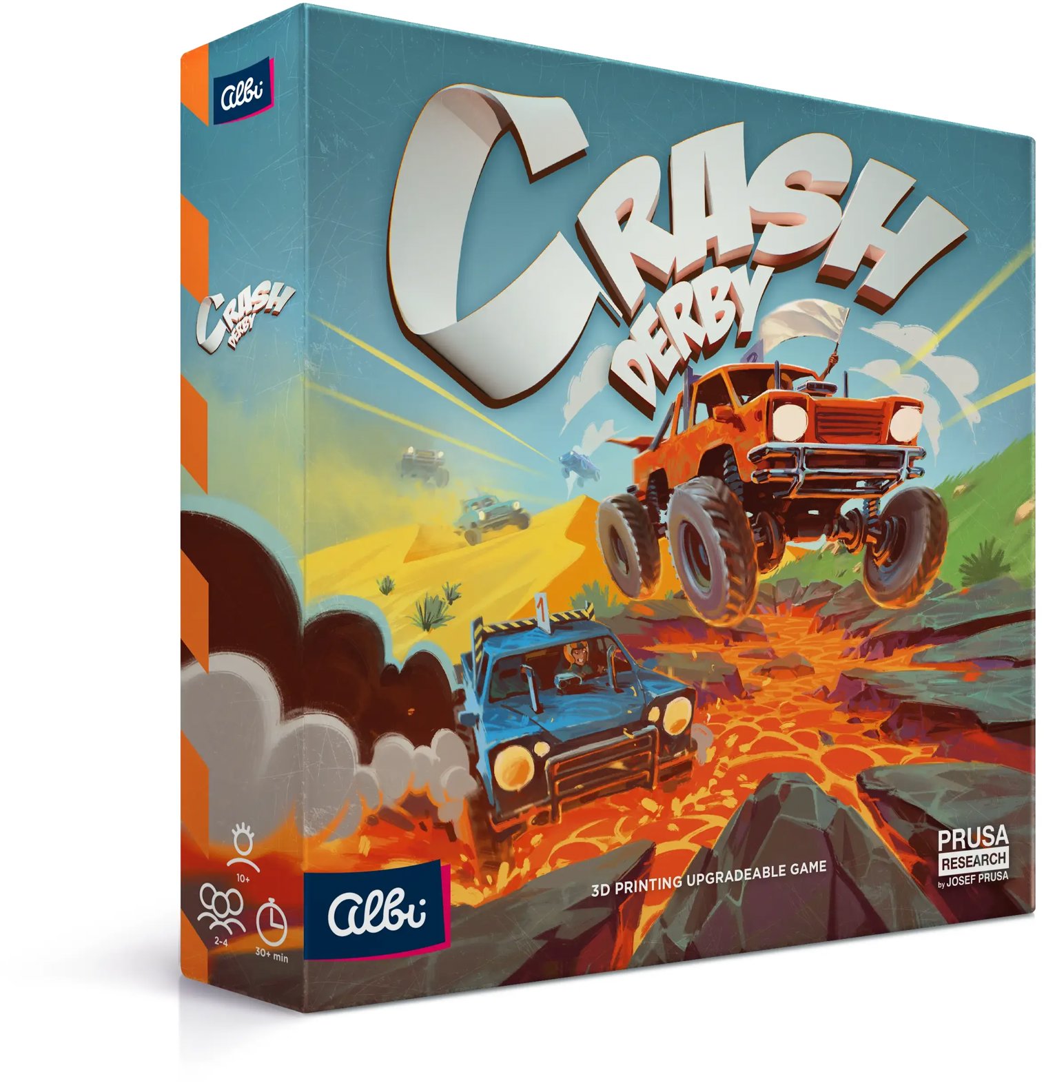 Dosková hra – postrehová, pre 2 až 4 hráčov, ľahká obťažnosť, dĺžka hry 30 min, rok vydania 2025, v českom jazyku,, vhodné od 10 rokov Crash Derby – Závodná stratégia plná nárazov, výbuchov a 3D autíčokCrash derby je strategická a dynamická závodná hra, v ktorej sa hráči snažia prejsť svoju vopred danú trasu a pritom sa snažia rôznym