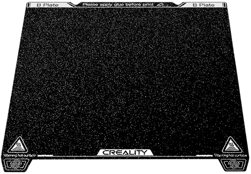 Tlačová podložka – kompatibilné s FDM tlačiarňami s plochou 315 × 310 mm, materiál pružinová oceľ, vynikajúca stabilita, zabraňuje deformáciám, ľahké odobratie výrobku Praktická PEI podložka od Creality sa pýši lepšou priľnavosťou a zabraňuje deformáciám. Podložka využíva vysokokvalitnú dosku z pružinovej ocele, vďaka ktorej garantuje vysokú stabilitu modelu a uľahč