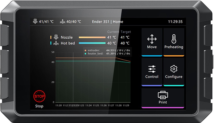 Príslušenstvo pre 3D tlačiarne – je možné pripojiť k takmer akejkoľvek FDM 3D tlačiarni, možnosť pripojenia až 4 tlačiarní súčasne, 7“ dotykový displej, 4× USB port a 1× RJ-45, online upgrade alebo offline cez USB Vylaďte výsledky vašej 3D tlače k dokonalosti. Všetku tlač môžete mať pod palcom vďaka Creality Sonic Pad s veľkou 7″ dotykovou obrazovkou. Creality Sonic Pad je možné pripojiť k takmer akejkoľvek FDM