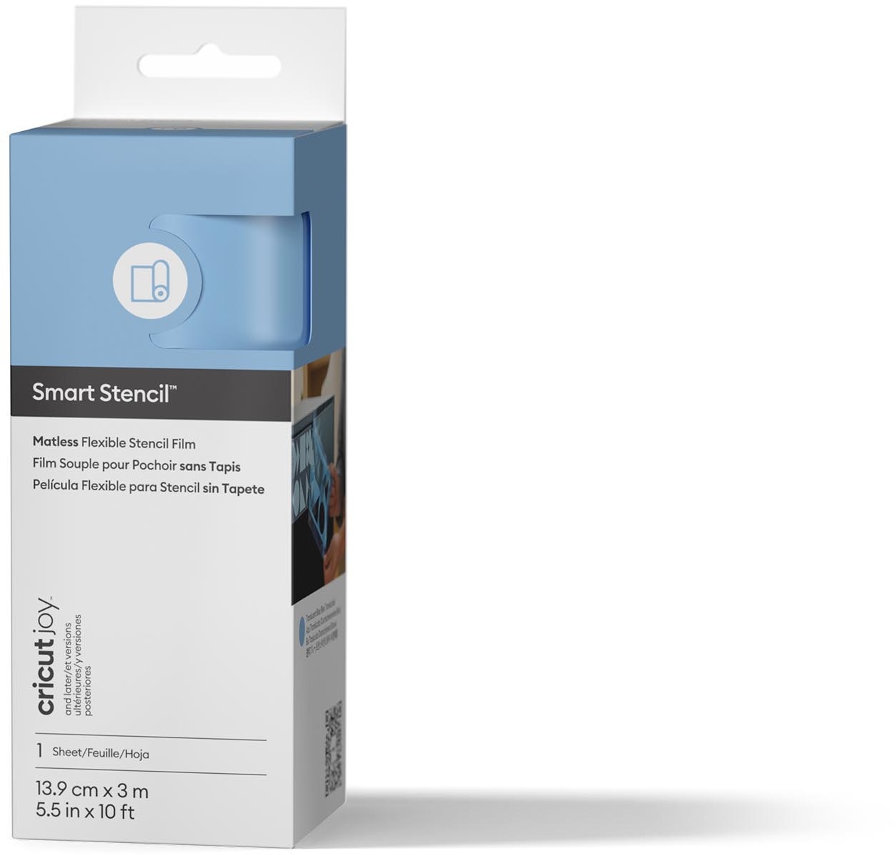 Papiere – samolepiaca šablónová fólia (Smart Stencil), matless rez bez podložky pre Cricut Joy, rolka 14 cm × 3 m (10 ft), súvislý rez v kuse až 1,2 m (4 ft), priesvitne modrá na ľahké zarovnanie, odnímateľné lepidlo bez zvyškov, na maľovanie na steny drevo sklo plátno, kompatibilná so štetcami, hubkami, valčekom aj sprejom, bez olova a ftalátov Šablónová fólia Cricut Joy Smart Stencil14 cm × 3 mŠablónová fólia Cricut Joy Smart Stencil 14 cm × 3 m je samolepiaci šablónový film navrhnutý na tvorbu presných a opakovateľných šablón s rezacím plo