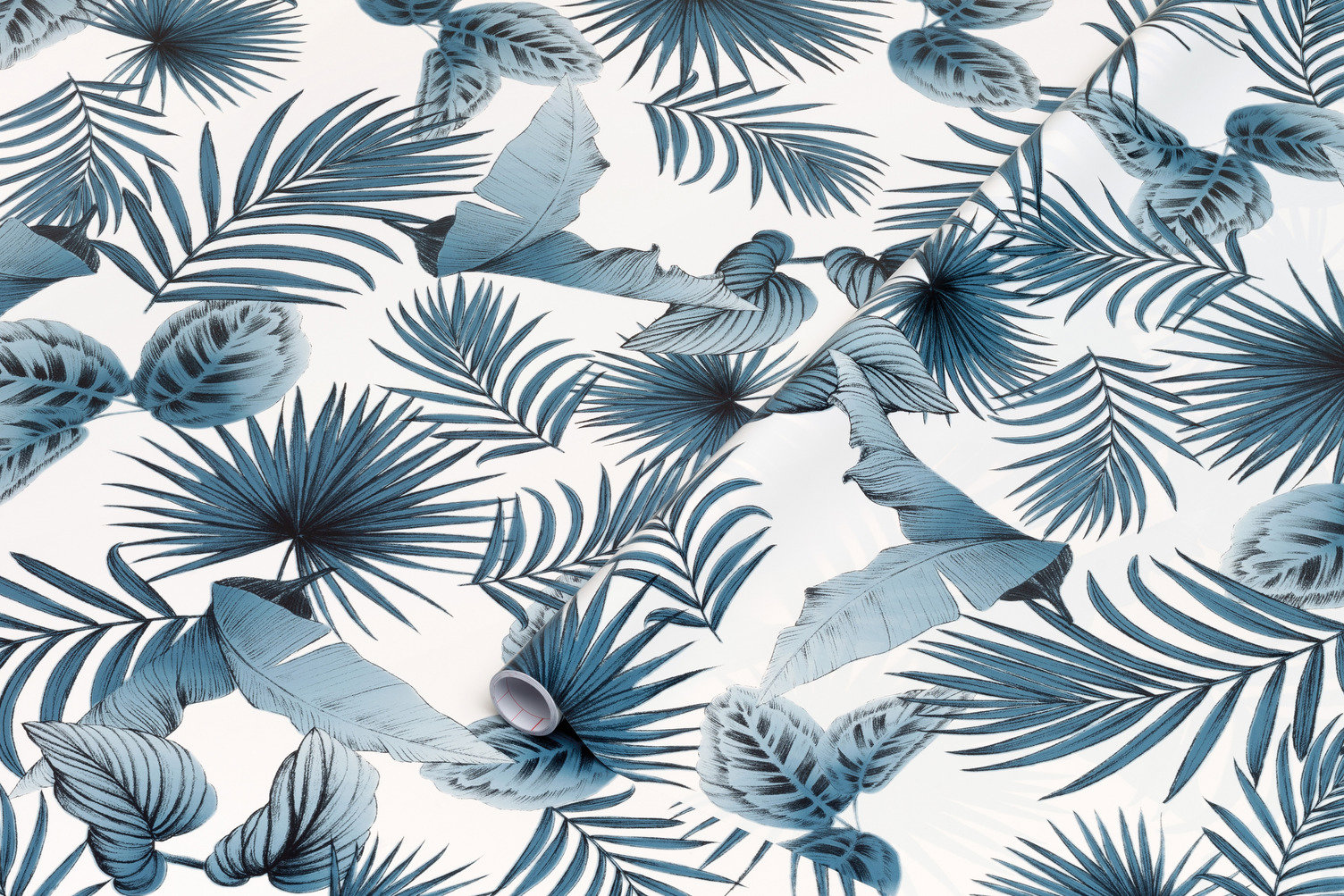 Samolepiaca fólia – na nábytok, interiérová, rozmery 200 × 67,5 cm (V׊), umývateľná, modrá a biela farba Hlavné prednosti samolepiacej fólie D-c-fix tropické listy, šírka 67,5 cm Samolepiacou fóliou na dvere a nábytok d-c-fix oživíte vzhľad starého a opozeraného nábytku alebo dverí Samolepiaca fólia na c