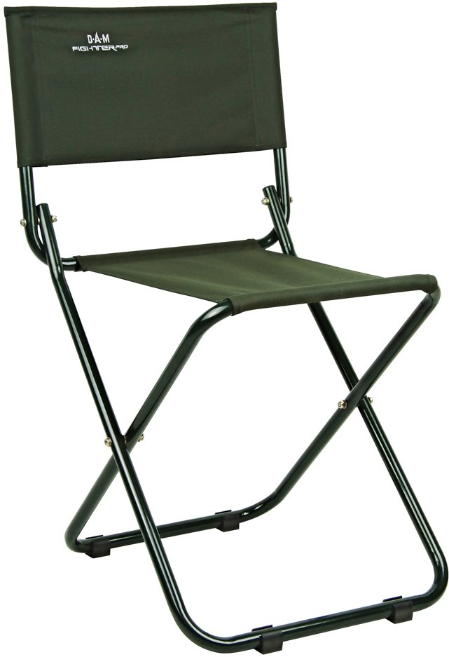Kempingová stolička – nosnosť 100 kg, zelená farba, hmotnosť 2,5 kg, rozmery 44 × 44 × 81 cm (V׊×D) Chodíte radi loviť ryby alebo kempovať? Potom určite oceníte túto praktickú, cenovo dostupnú stoličku. Stolička DAM Fighter Pro Chair je veľmi pevná s nízkou hmotnosťou. Je vyrobená z pevnej nylonovej