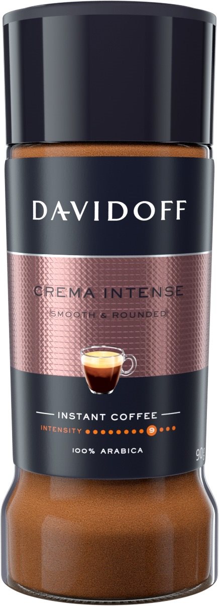 Káva – instantná, 100 % Arabica, hmotnosť balenia 90 g Davidoff Café Crema Intense90 gDavidoff Café Crema Intense je jemná 100 % arabika s bohatou penou. Vybrané zrnká prepožičiavajú tejto káve skvelú chuť a delikátnu arómu. Davidoff Crema Intense kombinu
