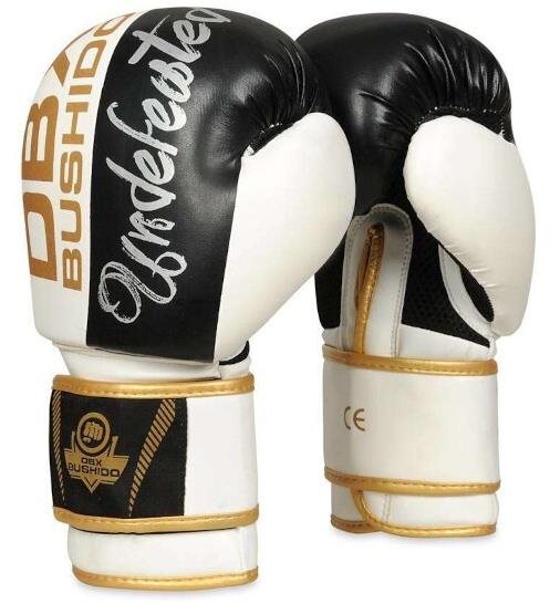 Boxerské rukavice – materiál syntetická koža, vetranie, hmotnosť 12 oz, biela, čierna a zlatá farba Boxerské rukavice DBX BUSHIDO sú vyrobené tak, aby tlmili nárazy a rovnomerne rozptyľovali silu úderu, čo pomáha chrániť prsty, kĺby a zápästie. Vzhľadom na hmotnosť 12 Oz sú určené predovšetkým na tr