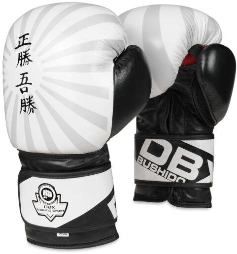 Boxerské rukavice – materiál koža, vetranie, hmotnosť 12 oz, biela a čierna farba Boxerské rukavice DBX BUSHIDO tlmia nárazy a rovnomerne distribuujú silu úderu, čo znižuje záťaž na kĺby, zápästie a prsty. S hmotnosťou 12 Oz sú ideálne nielen na tréning, ale aj zápasy v ľahkej váhe