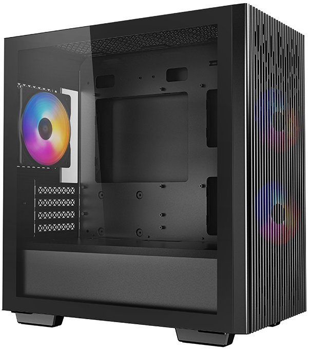 PC skrinka – mATX (Micro ATX) a mITX (Mini ITX), 2× 3,5″, 2× 2,5″, Konektory predného panelu USB 2.0, USB 3.2 Gen 1 a 3,5 mm Jack (mikrofón/slúchadlá), počet predinštalovaných ventilátorov 3× 120 mm, max. výška chladiča 165 mm, max. dĺžka grafickej karty 320 mm, bez zdroja, materiál bočnice temperované sklo, LED farba podsvietenia Počítačová skříň DEEPCOOL MATREXX 40 3FS s velikostí Midi Tower nabídne vychytané provedení, na kterém převáží černá barva. Ta je použitá na ocelové konstrukci. Model s rozměrem Midi tower je příslib