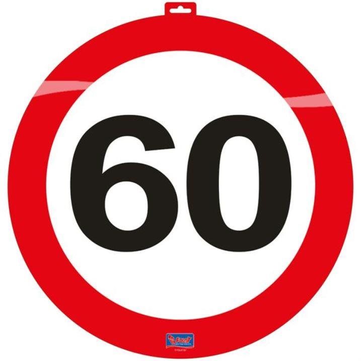 Párty doplnky – výzdoba k 60. narodeninám s dizajnom dopravnej značky, materiál ohybný plast, oko na zavesenie, priemer 47 cm Kľúčové vlastnosti párty doplnkov Dekorácia dopravná značka 60, 47 cmOriginálna a vtipná výzdoba k 60. narodeninám v dizajne dopravnej značkyDopravná značka vyrobená z ohybného plastuV hornej časti ok