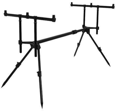 Stojan na udicu – štvornohý, na 3 prúty, nastaviteľný a s prepravnou taškou, výrobným materiálom je hliník, hmotnosť 2000 g, min. dĺžka 80 cm, max. dĺžka 130 cm, min. šírka 40 cm, max. šírka 75…