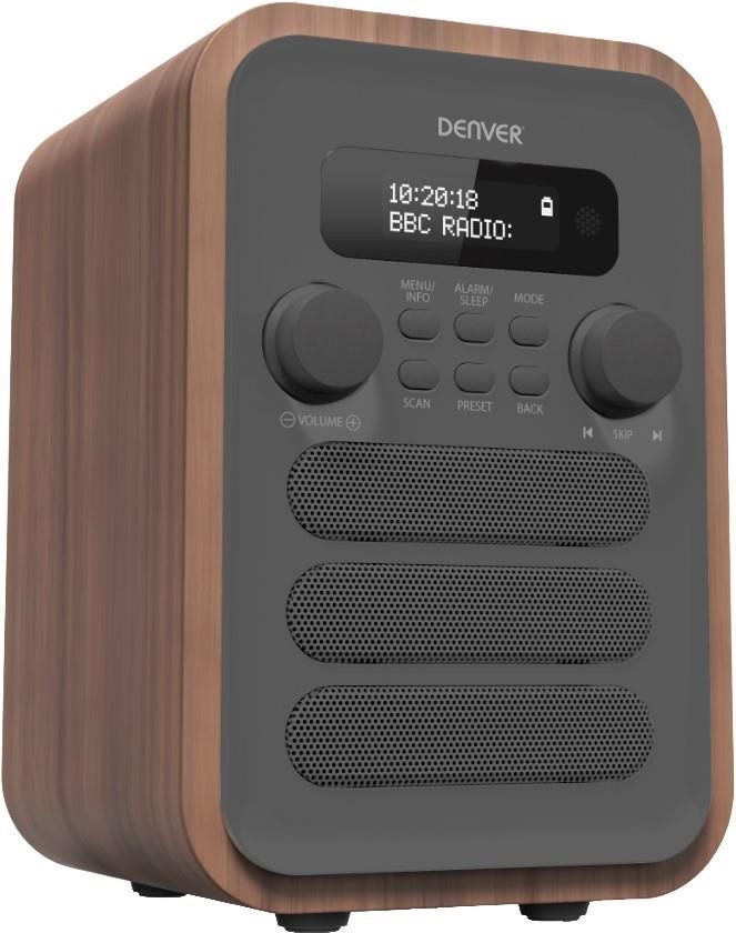 Rádio – klasické, DAB+, FM a RDS tuner disponuje 40 predvoľbami, výkon 2,5 W, výstup 3,5 mm Jack, automatické vypnutie, sleep a snooze, Bluetooth, budík, displej a hodiny, diaľkové ovládanie súčasťou, napájanie sieťové, klasický dizajn, rozmery 165 × 108 × 125 mm (V׊×H), hmotnosť 1,2 kg, čierna a hnedá farba Hlavné prednosti rádia Denver DAB-48 GREY Rádio Denver disponuje tunerom na príjem DAB+, FM a RDS Vie zobraziť informácie o aktuálne prehrávanom obsahu Medzi obľúbené funkcie sa zaraďuje automatické v