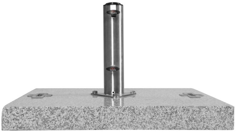 Stojan na slnečník – štvorcový tvar, na slnečníkovú tyč priemeru od 32 do 70 mm, rozmery 70 × 70 cm (Š×H), 2 zaisťovacie skrutky, materiál základne žula, kovová rúrka, hmotnosť 90 kg, sivá farba Kľúčové vlastnosti stojana na slnečník Derby Žulový stojan, 90 kg Štvorcový stojan na slnečník Derby s celkovou hmotnosťou 90 kg zaručuje bezpečnú a pevnú fixáciu slnečníka Slnečník sa fixuje 2 zaisťo