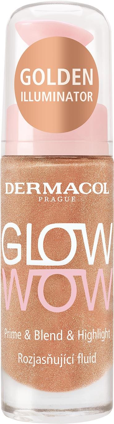 Pleťový fluid zjednotí tón pleti a zároveň ju okamžite rozjasní Rozjasňujúci fluid DERMACOL Glow Wow vašu pleť vyhladí a rozjasní. Ponúka krémovú textúru s perleťou, obsahuje veľmi jemné zlaté, strieborné a bronzové trblietky. Rozjasňujúci fluid prežiari pleť, môž