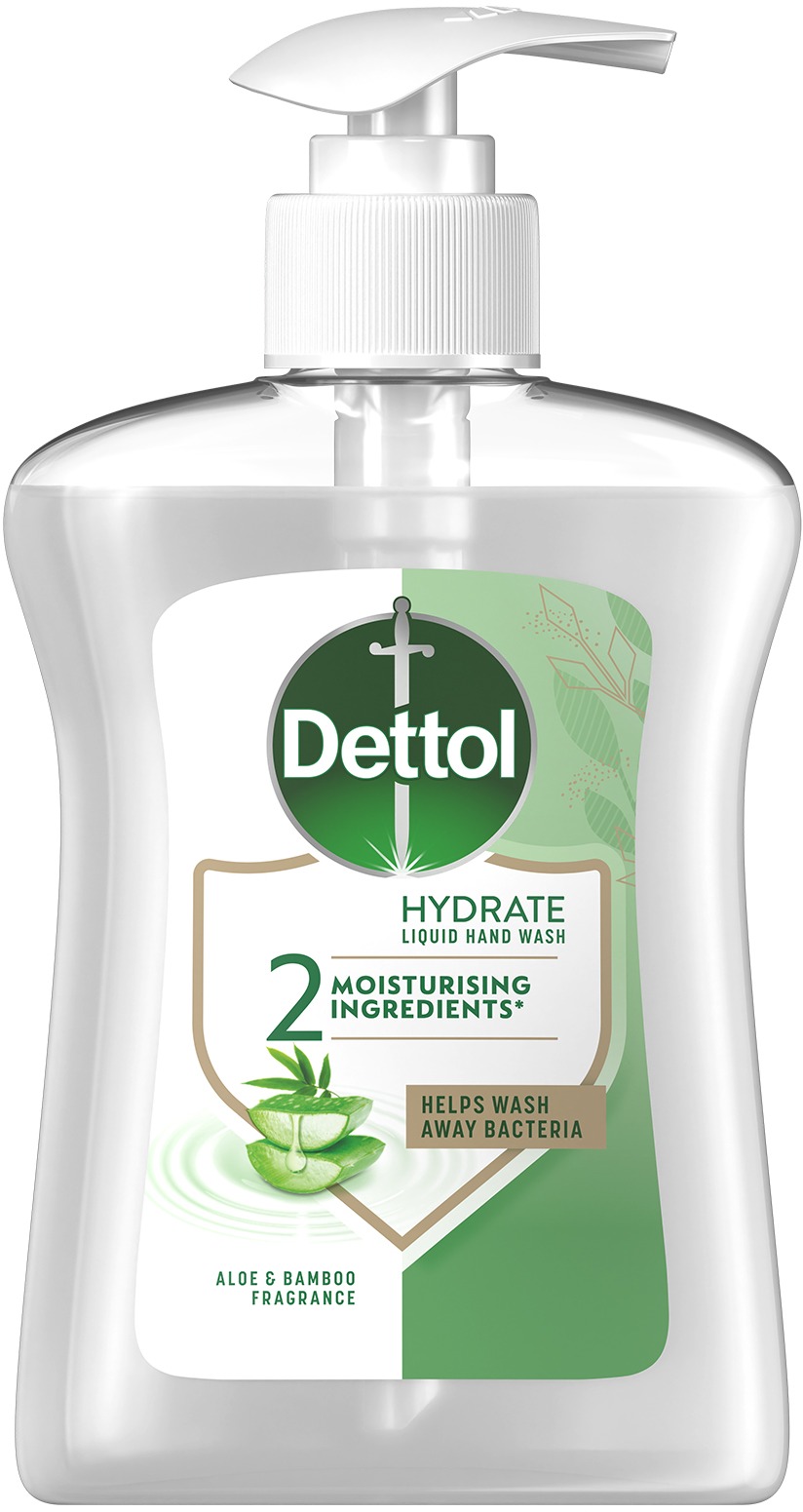 Tekuté mydlo – na mastnú, normálnu, zmiešanú, suchú a zrelú pokožku, účinok čistiaci a hydratačný, vlastnosti produktu: s pumpičkou a na každodenné použitie, aktívne látky aloe vera, aloe vera vôňa, pre mužov a ženy, objem 250 ml Tekuté mydlo je absolútnou klasikou v oblasti každodennej hygieny. Ľahko sa dávkuje a na rozdiel od klasického mydla minimalizuje pri používaní prenos baktérií. Kľúčové prednosti mydla DETTOL Tekuté m