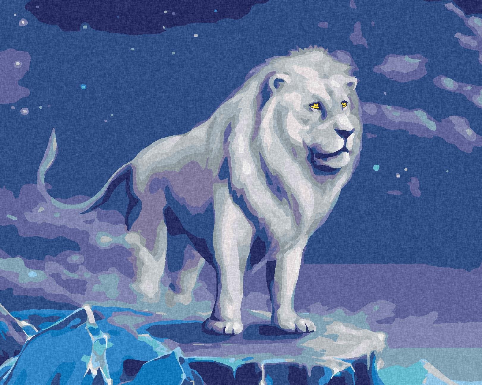 28,74 €Diamondi – BIELY LEV S JASNOU MODROU OBLOHOU, 40 × 50 cm, bez rámu a bez napnutia plátna