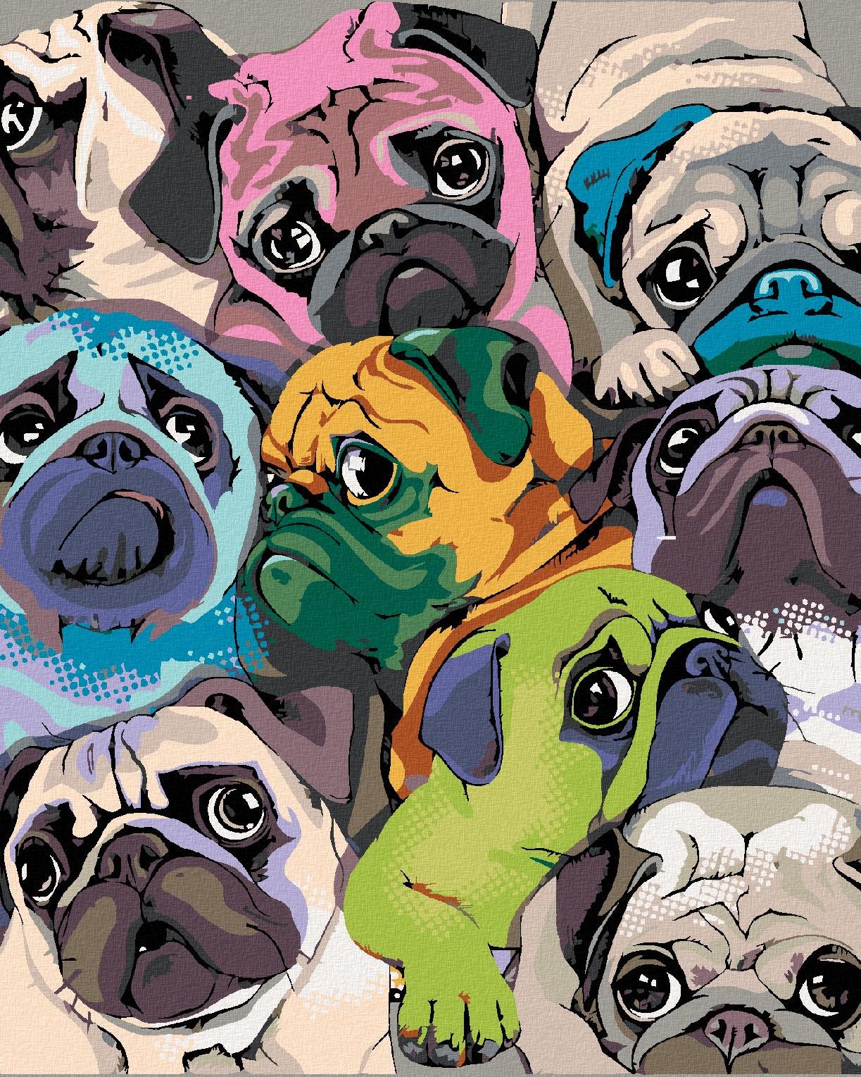 Diamondi – Diamantové maľovanie – FAREBNÝ MOPSLÍK, 40 × 50 cm, vypnuté plátno na rám