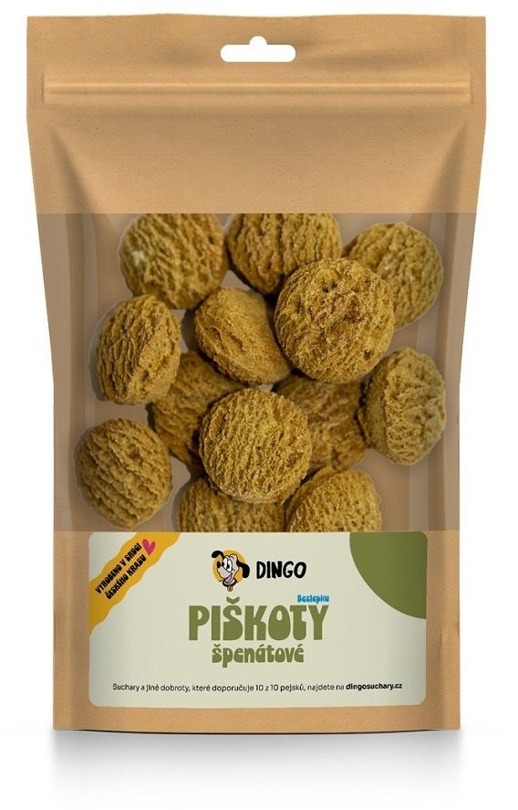 Piškóty pre psa vhodné pre plemená všetkých veľkostí, hmotnosť balenia: 0,09 kg Kľúčové vlastnosti maškrty pre psov Dingo Piškóty špenátové, 90 gChutné doplnkové krmivo, ktoré je vyrábané z vysoko kvalitných prírodných surovínTvrdé a pekne prepečené maškrty si váš psík vychutnáPr