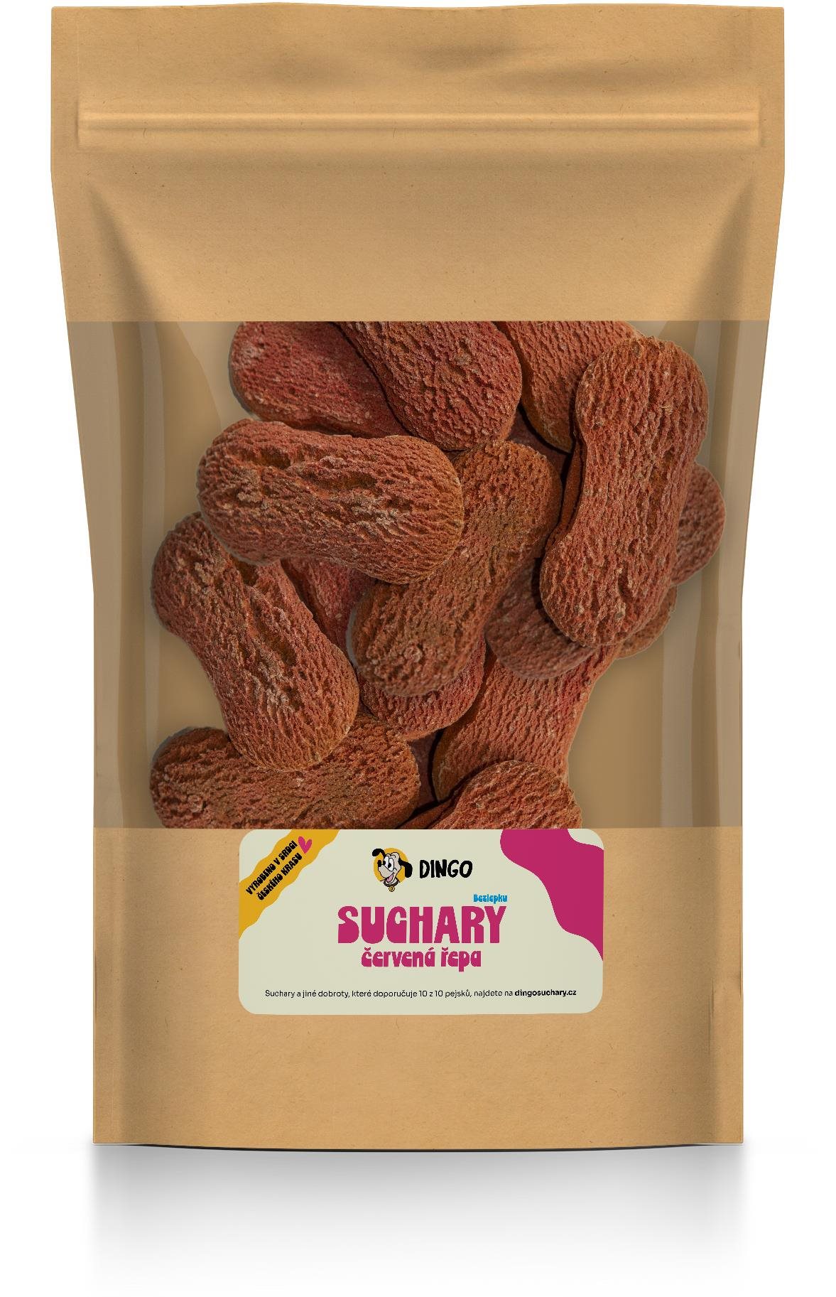 Maškrty pre psov – bez obmedzenia veku s nízkou a normálnou aktivitou, vhodné pre kastrované zvieratá, zeleninová príchuť, hmotnosť balenia 0,5 kg, suché, hrubé bielkoviny 19,6 %, špecifiká zloženia bez GMO, diétne a bez soli Kľúčové vlastnosti maškrty pre psov Dingo Suchary červená repa, 500 gPomaly pečené repové sucháre slúžia ako doplnkové krmivoVhodné ako maškrtaPrirodzeným spôsobom čistí chrup a tým zabraňuje tvorbe z