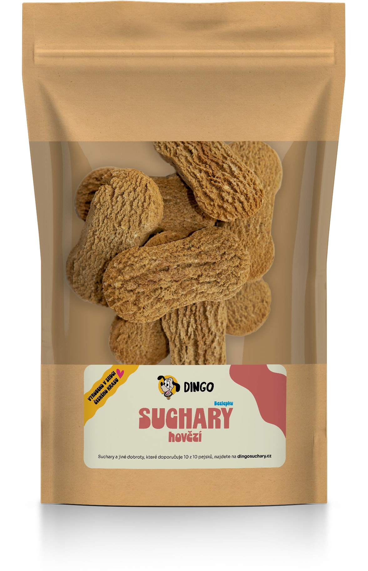 Maškrty pre psov – bez obmedzenia veku s nízkou a normálnou aktivitou, vhodné pre kastrované zvieratá, hovädzia príchuť, hmotnosť balenia 0,25 kg, suché, hrubé bielkoviny 31 %, špecifiká zloženia bez GMO, diétne a bez soli Kľúčové vlastnosti maškrty pre psov Dingo Suchary hovädzie, 250 gPomaly pečené hovädzie sucháre slúžia ako doplnkové krmivoVhodné ako maškrtaPrirodzeným spôsobom čistí chrup a tým zabraňuje tvorbe zub