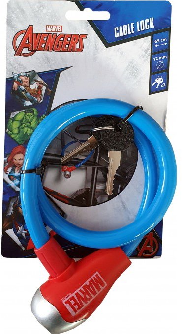 Zámok na bicykel – lankový, zamykanie na kľúč, dĺžka 650 mm, umiestnenie na rám, 2 kľúče Kľúčové vlastnosti zámku na bicykel Disney Zámok na bicykel Avengers, lankový Lankový zámok na bicykel Disney ponúka nízku hmotnosť a ľahkú manipuláciu Umožní vám spoľahlivo zabezpečiť bicykel a kolob