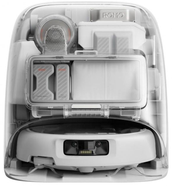 Robotický vysávač s mopom – na zvieracie chlpy, na tvrdé podlahy, mäkké povrchy, linoleum, drevené podlahy, plávajúce podlahy a hladké podlahy, automatické dobíjanie, senzor proti nárazu, automatické vysypanie, vysávanie viacerých miestností a senzor proti pádu zo schodov, ovládanie mobilnou aplikáciou, plastová zberná nádoba, 2 bočné kefy, prekoná prekážky do výšky 0,2 cm, LiDAR navigácia, doba prevádzky 180 min, doba nabíjania 2,5 h, výška 9,8 cm Robotický vysávač ROMO P spája špičkovú senzorovú a elektromechanickú technológiu inšpirovanú vlajkovými dronami DJI. Vďaka pokročilým senzorom a smart algoritmom vykonáva dôkladné upra
