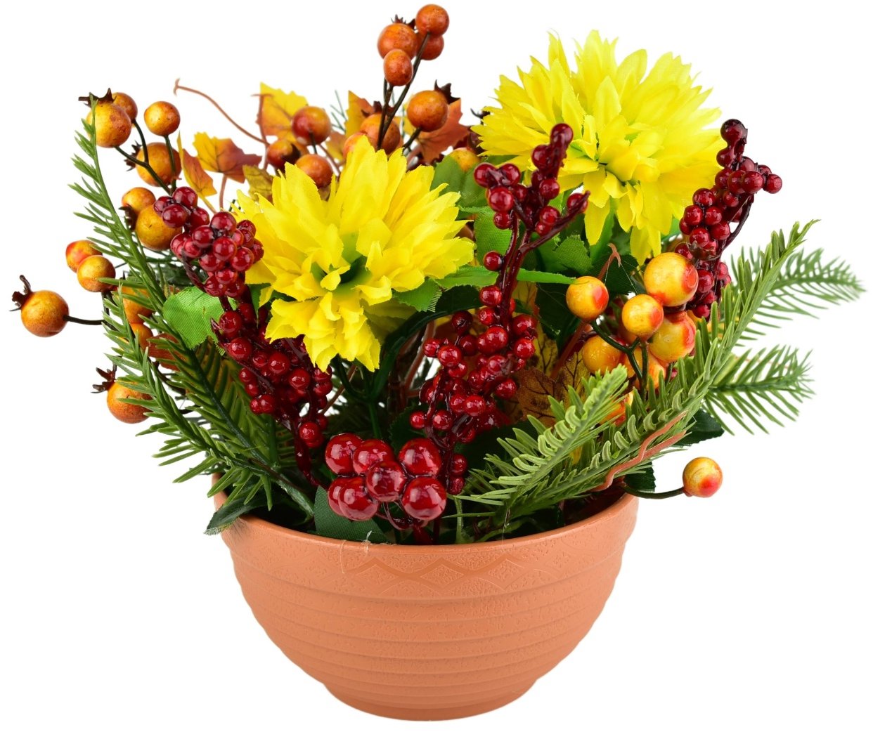 Dekorácia – rozmery 25 × 25 cm, priemer 15 cm, výška 7,5 cm, materiál plast, terakotová farba, na smútočné dekorácie alebo ako jesenná ozdoba, hmotnosť 800 g