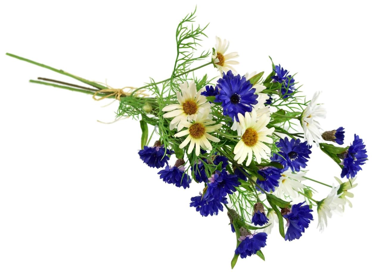 Umelý kvet – margaréta, do vázy, vhodný do interiéru, materiál plast a textil, biela, modrá a zelená farba, rozmery 70 × 25 × 25 cm (V׊×H) Zásadné vlastnosti umelého kvetu DOMMIO Lúčne kvety margarétky 70…