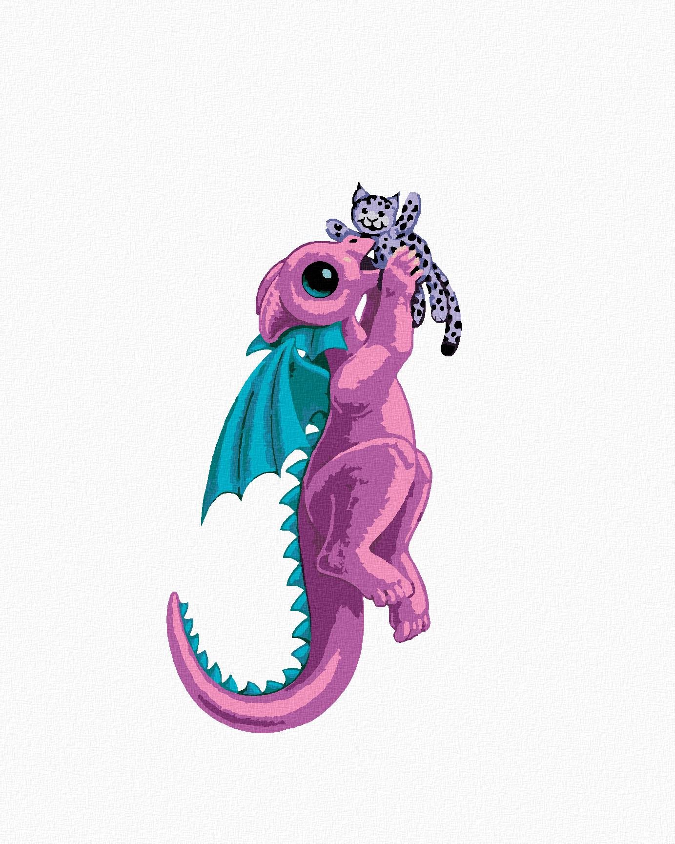 Maľovanie podľa čísel – pre deti, veľmi ľahká náročnosť, plátno, súprava štetcov, farby a vymaľovaný vzor súčasťou balenia, rozmery 100 × 80 cm (V׊) Kľúčové vlastnosti maľovania podľa čísiel Dráčik v tvare písmenka J (Sue Ellen Brown), 80 × 100 cm, bez rámu a bez vypnutia plátna Maľovanie podľa čísiel si obľúbia všetci tvoriví ľudia Materiálom plá