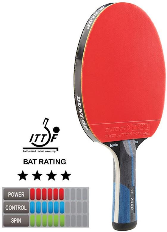 Pingpongová raketa – štvorhviezdičková, konkávne (FL) držadlo, hmotnosť 175 g Raketa Evolution 2 000 je určená pre rýchlo sa zlepšujúceho hráča, ktorý si praje posunúť svoju hru na ďalšiu úroveň. Napriek tomu, že si táto raketa stále udržuje výbornú kontrolu, ponúka výrazný nár