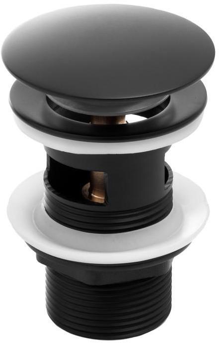 Drezový výpust – farba čierna Drezový výpust DURAmat s mechanizmom KLIK-KLAK, model MIKI 46335, je navrhnutý v elegantnom čiernom matnom prevedení. Táto výpust je vybavená prepadom, čo ju robí ideálnou voľbou na drezy, kde je potr
