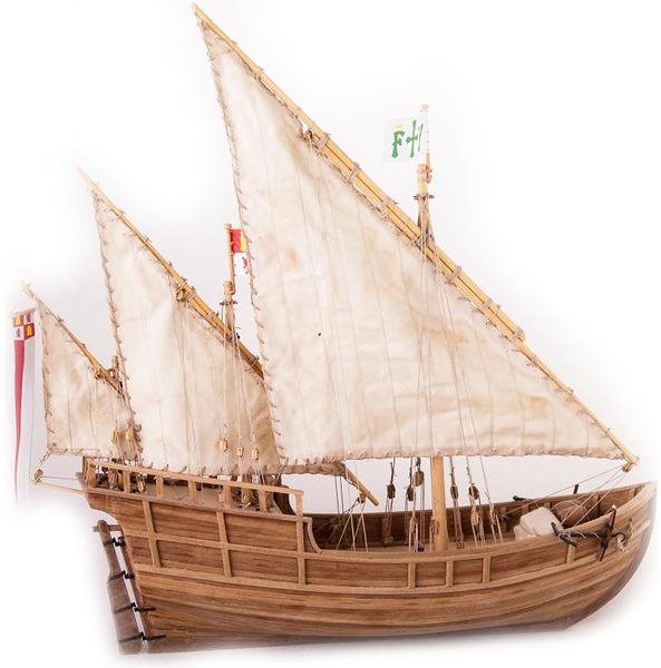 Drevený model – vhodné od 14 let, materiál dřevo, mosazné detaily, pro mírně pokročilé modeláře se základními zkušenostmi, neplovoucí, historická loď Nina z flotily Kryštofa Kolumba, civilní typ, rok 1492, měřítko 1:72, realistické provedení, délka modelu 36 cm, stavební obtížnost 2, v balení krabice s fotografií hotového modelu, technickými údaji a měřítkem, látka pro plachty, vlajky a lanoví, kompletní výkresová dokumentace a pokyny Stavebnice makety lodi Nina z roku 1492 z flotily Kryštofa Kolumba je v měřítku 1:72. Délka modelu lodi je 360 mm, stavba převážně ze dřeva s drobnými doplňky, součástí je stavební plán a pokyny s mno