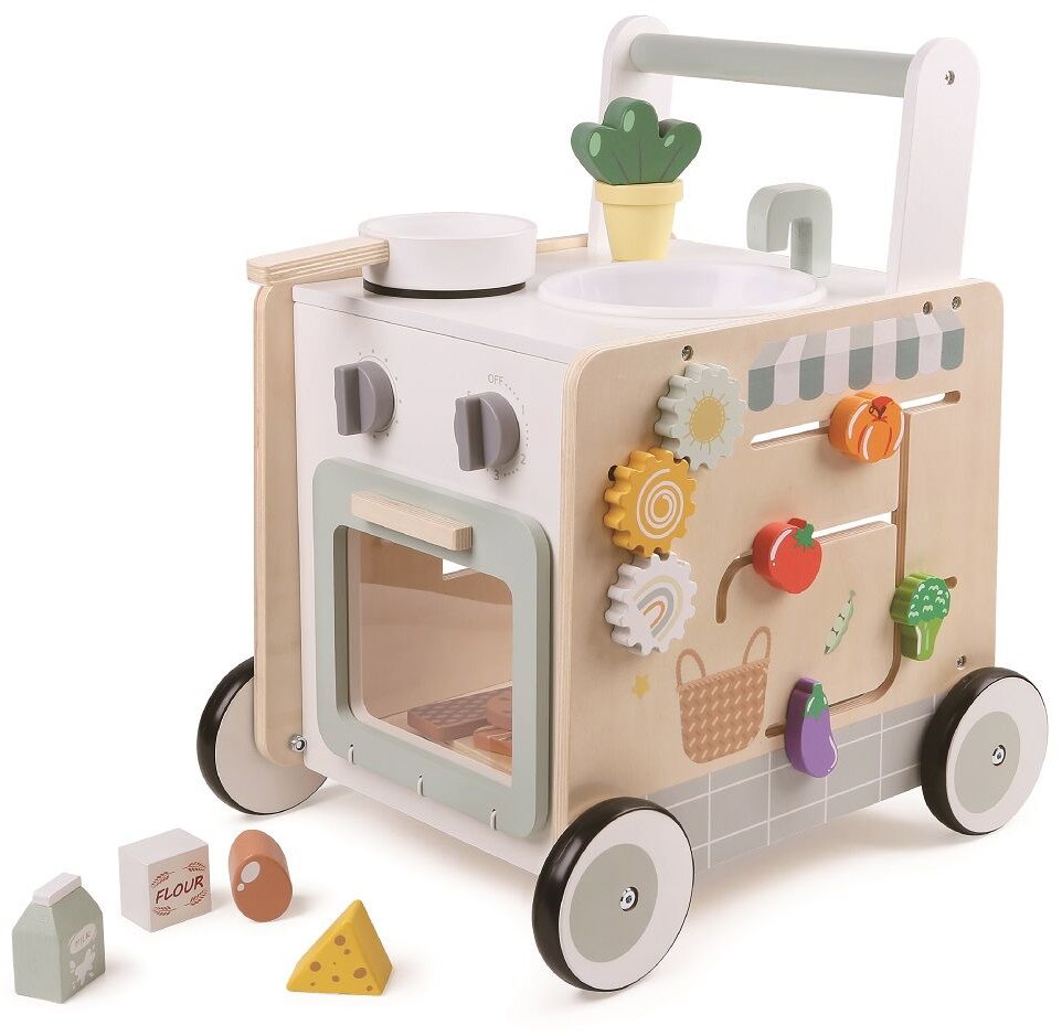 Chodítko – pre deti, aktívne, drevené, gumové, kovové, vhodné od 1 roka, 2 v 1, s protišmykovými kolieskami, labyrint, hračky a ozubené kolieska súčasťou, rozmery 47,5 × 40 × 33 cm (V׊×H), hmotnosť 5,5 kg,…