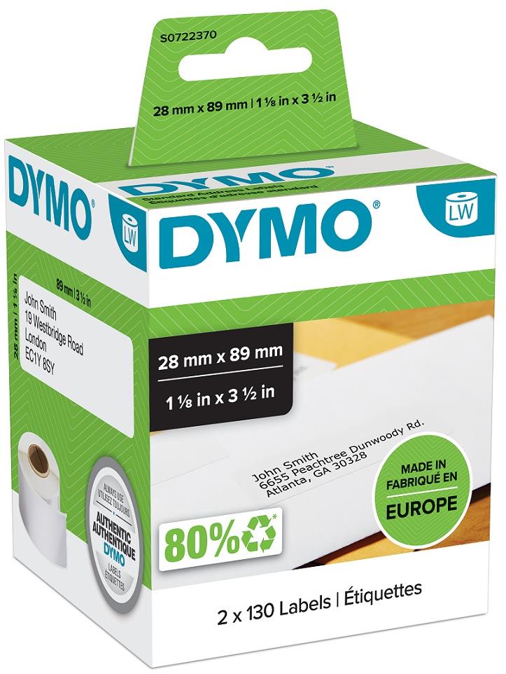 Dymo LabelWriter štítky 89 × 28 mm, 2× 130 ks