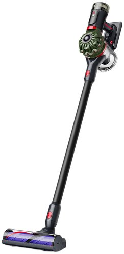 Tyčový vysávač – bezvreckový, aku, na všetky druhy podláh, na zvieracie chlpy, na Li-Ion batérie, doba chodu 60 min, doba nabíjania 4 h, príkon 525 W, hlučnosť 84 dB, plastová zberná nádoba s objemom 0,54 l, ovládanie na tele, s teleskopickou trubicou, rozmery 116 × 25 × 21 cm (V׊×H), hmotnosť 2,6 kg, nádobka na vodu a držiak na stenu súčasťou balenia, čierna farba Tyčový vysávač Dyson V8 Cyclone ponúka o 30 % vyšší sací výkon ako predchádzajúce generácie a vďaka 15 cyklónom usporiadaným do dvoch radov efektívne oddeľuje prach, alergény a mikročastice od prúdu v