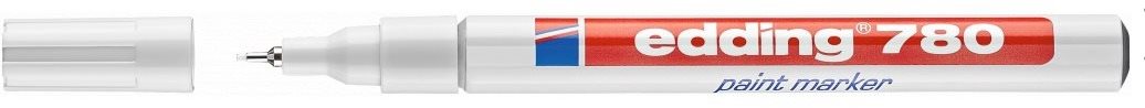 Popisovač – lakový, na sklo, plast a kov, rýchloschnúci, guľatý hrot, šírka stopy 0,8 mm, okrúhly úchop, Kľúčové vlastnosti fixky EDDING 780, biely Fixka EDDING je písacou aj výtvarnou pomôckou Okrúhly tvar je príjemný na manipuláciu Hodí sa na použitie na sklo, plast a kov Popisovač so silne krycími úči