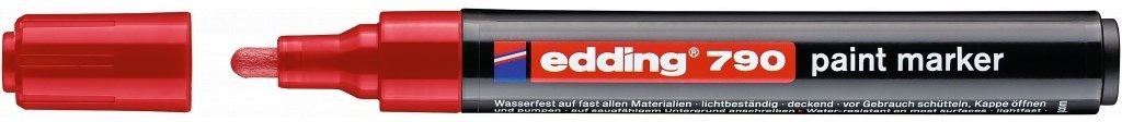 Popisovač – lakový, na drevo, sklo, plast a kov, vodoodolný, guľatý hrot, šírka stopy 3 mm, okrúhly úchop, Zásadné vlastnosti fixky EDDING 790, červený Fixka EDDING patrí medzi písacie aj výtvarné potreby Okrúhly tvar je skvele prispôsobený na držanie v ruke Je výborná na drevo, sklo, plast a kov Popisovač