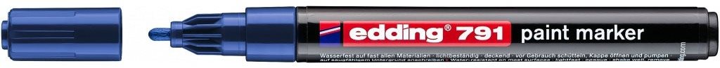 Popisovač – lakový, permanentný, na drevo, sklo, plast a kov, guľatý hrot, šírka stopy 2 mm, okrúhly úchop, Hlavné vlastnosti fixky EDDING 791, modrý Permanentná fixka EDDING, známa ako „liehovka“, sa dá všestranne použiť Okrúhly…