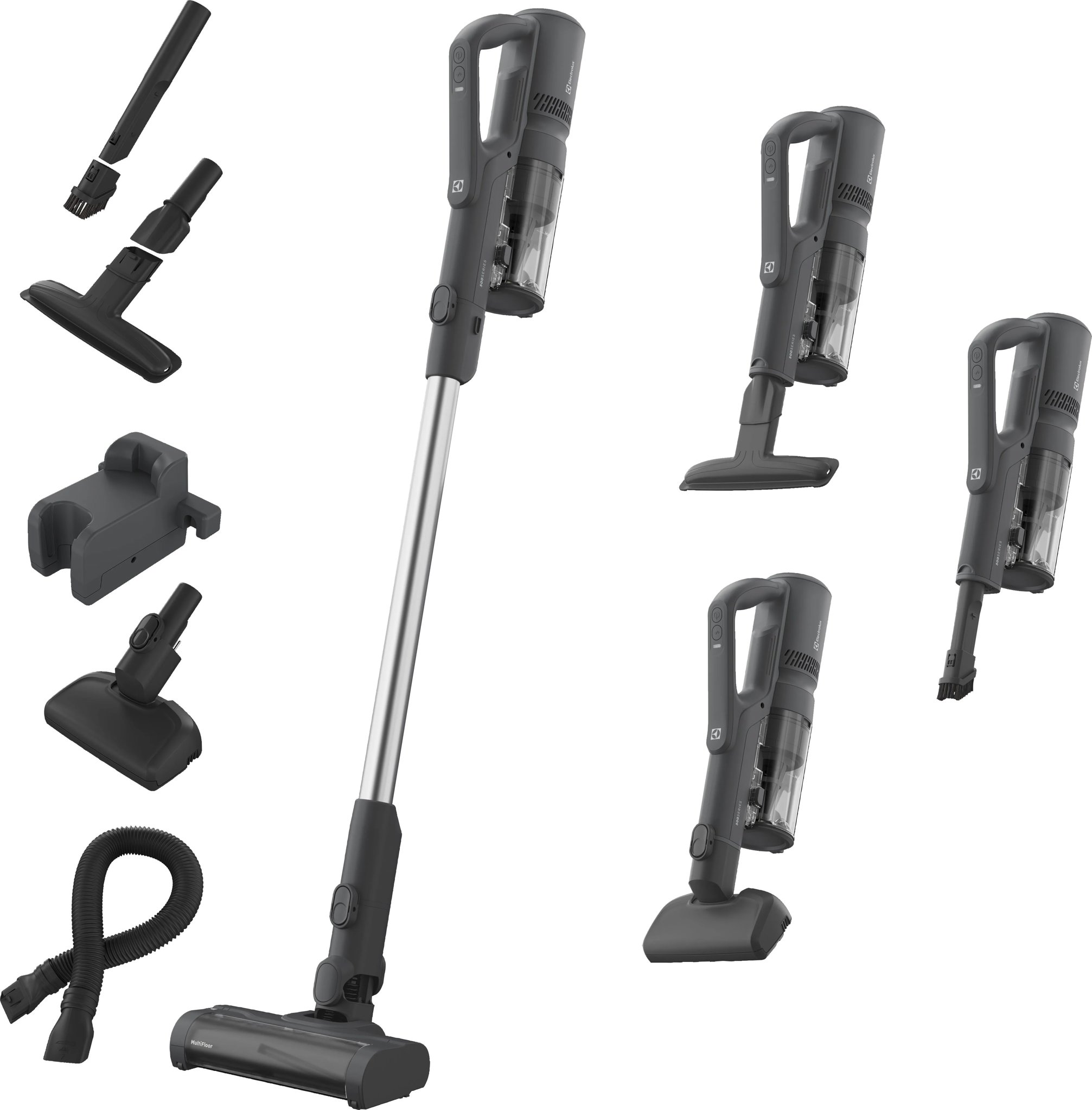 Tyčový vysávač – 2 v 1, bezvreckový, aku, na všetky druhy podláh, na zvieracie chlpy, na Li-Ion batérie, doba chodu 50 min, doba nabíjania 4 h, LED kontrolky stavu nabitia batérie a regulácia výkonu, hlučnosť 82 dB, plastová zberná nádoba, ovládanie na tele, dĺžka kábla 1,8 m, rozmery 107,45 × 23,05 × 22,55 cm (V׊×H), hmotnosť 2,783 kg, držiak na stenu súčasťou balenia, sivá farba Tyčový vysávač ELECTROLUX sa skvele hodí na rýchle upratovanie domácnosti. S ľahkosťou sa vysporiada s rozličnými typmi povrchov. S istotou odstráni aj chlpy vašich domácich miláčikov. Jeho maximálna