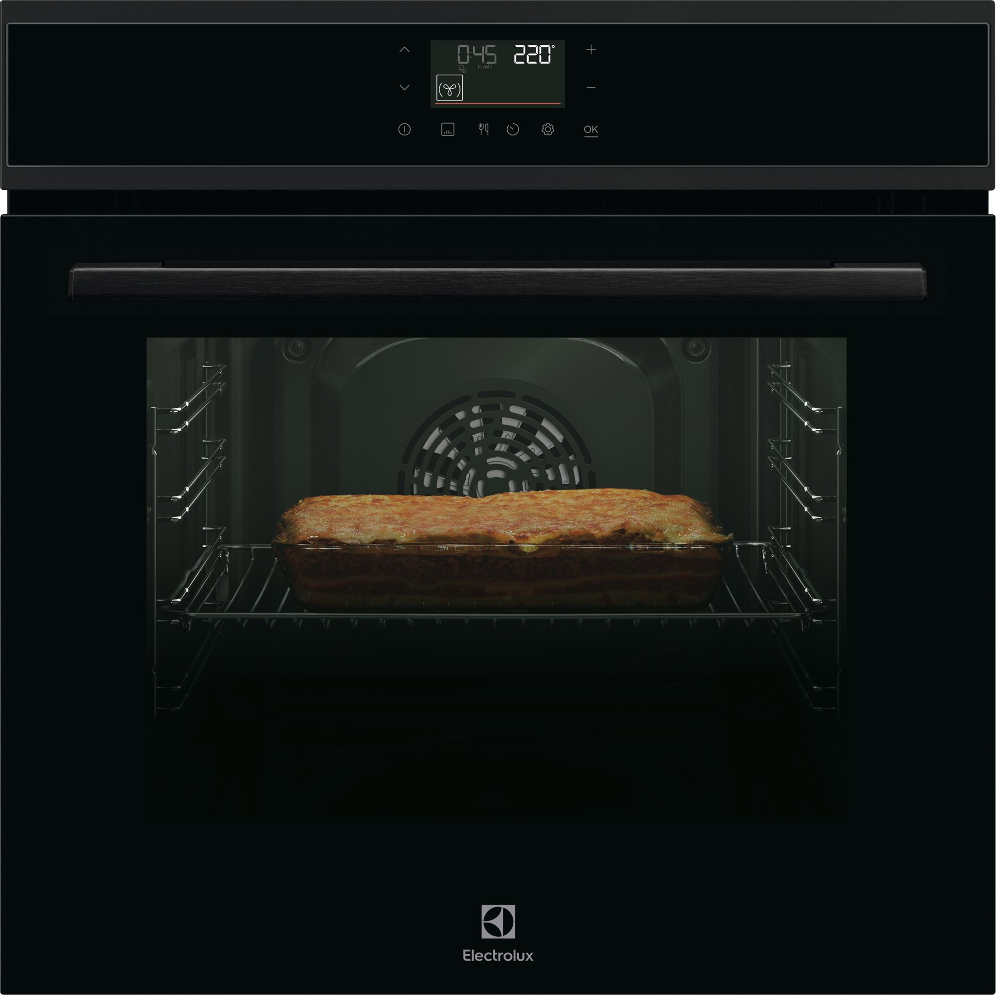 Vstavaná rúra – rozmery 59,8 × 59,4 × 56 cm (V׊×H), objem 65 l, vybavená grilom, spodným ohrevom, kruhovým vykurovacím telesom, rozmrazovaním, programom na pizzu, disponuje teleskopickým vysúvaním plechu, dotykové ovládanie, studené vonkajšie sklo, tlmené zatváranie a 4-vrstvové sklo, elektronická regulácia teploty a ochladzovací systém, príkon 2320 W, časovač, displej a vnútorné osvetlenie, 2 plechy a 1 rošt v balení, pyrolytické čistenie rúry, energetická trieda A+, sieťový kábel so zástrčkou súčasťou balenia Vstavaná rúra sa stala neodmysliteľnou súčasťou každej modernej kuchyne, ktorá sa usiluje o dokonalosť a kvalitu v príprave jedál. Vstavaná rúra s grilom ELECTROLUX 500 SurroundCook EOF7P86H3 prináša