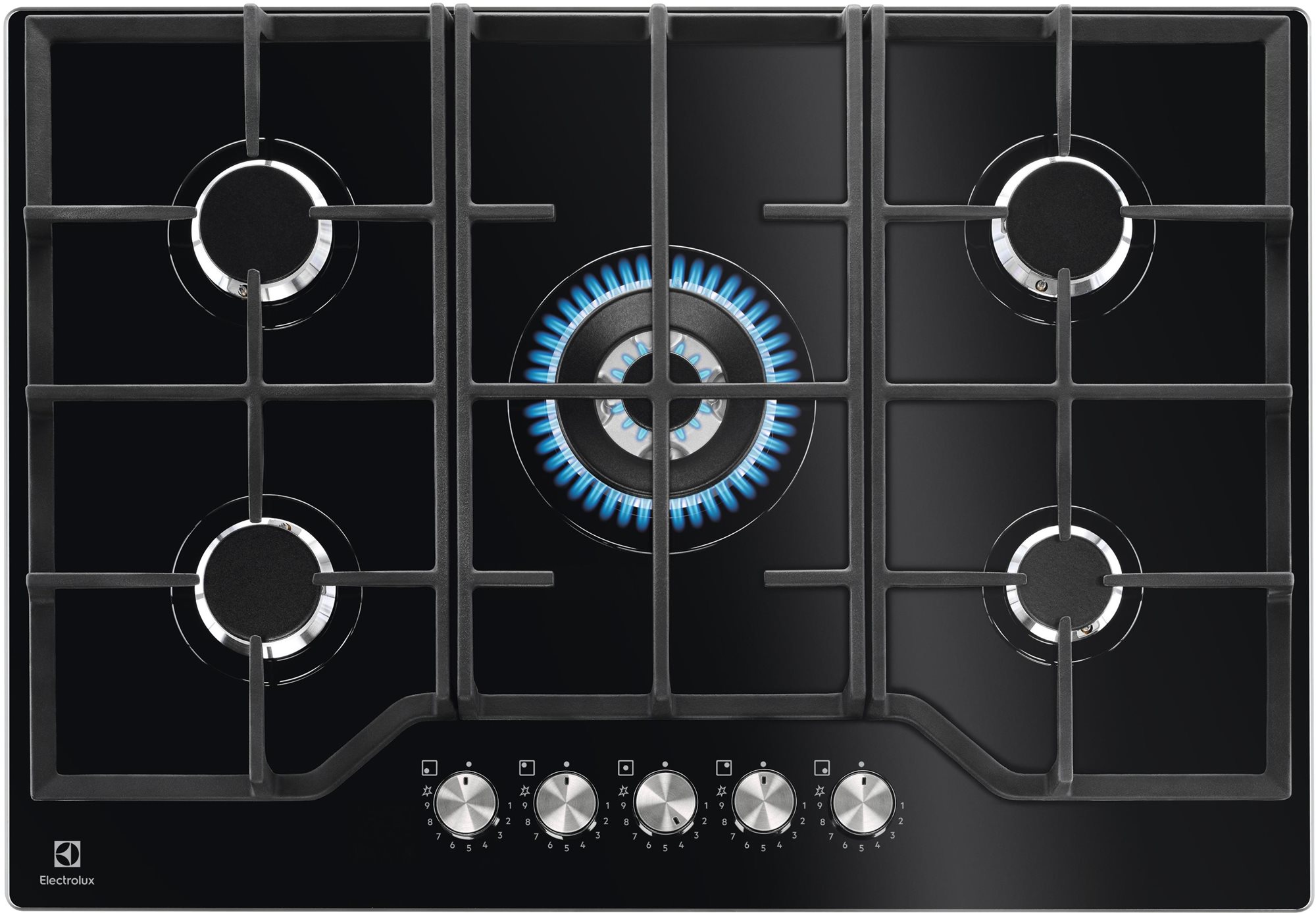 Varná doska – plynová, vstavaná, 5 platničiek, detská poistka, plynulá regulácia výkonu a poistka horáka, horák wok, otočné gombíky, rovné hrany, bez rámika, vzhľad čierne sklo, povrch sklo, pripojenie 230 V, rozmery 56 × 48 × 4,3 cm (Š×H×V), na zapojenie spotrebiča je potrebný plynár Plynová doska s piatimi liatinovými horákmi a termopoistkouVarná doska ELECTROLUX 600 PRO StepPower KGG75362KPlynová varná doska ELECTROLUX 600 PRO StepPower KGG75362K je vybavená celkom piatimi plyno