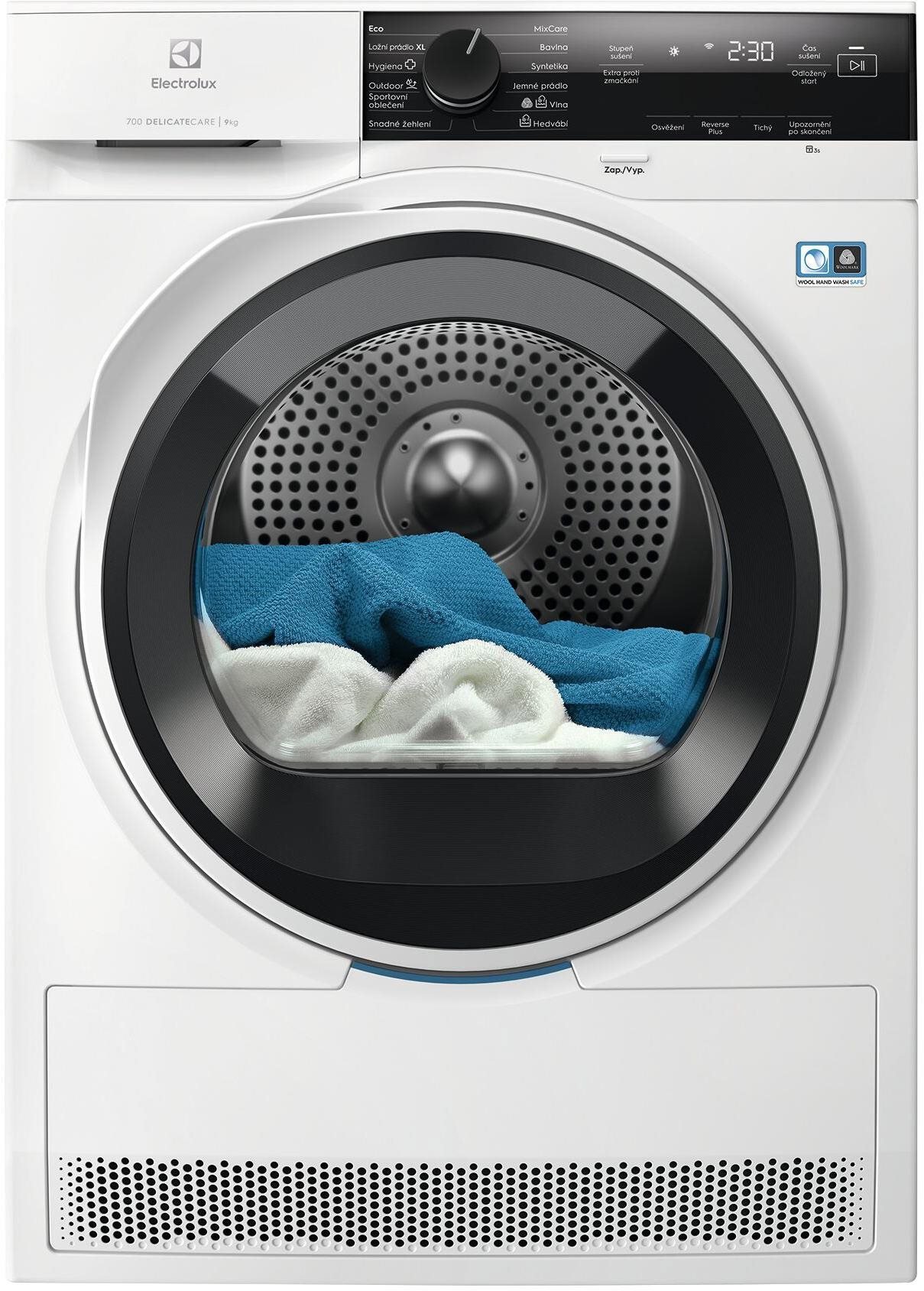 Sušička prádla – kondenzačná, samostatne stojaca, energetická trieda (nové označenie C), účinnosť sušenia B, maximálne množstvo bielizne 9 kg, hlučnosť 63 dB, spotreba energie 106 kWh/100 cyklů, SensitiveDrying, odložený štart, tepelné čerpadlo, vnútorné osvetlenie a voliteľný smer otvárania dvierok, hĺbka 65,9 cm, nádoba na kondenzát a súprava na pripojenie odpadu súčasťou balenia Máte problém s nedostatočným priestorom na sušenie bielizne a hľadáte riešenie? Potom bude kúpa voľne stojacej sušičky bielizne ELECTROLUX tá najlepšia možnosť. Je to kondenzačná sušička. Kondenzačná