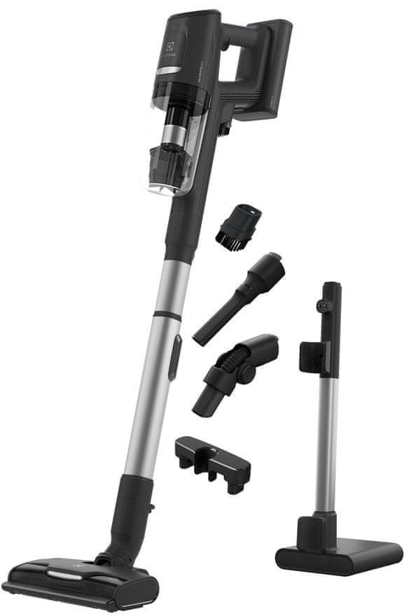 Tyčový vysávač – aku, na všetky druhy podláh, na vysávanie, na Li-Ion batérie, doba chodu 35 min, doba nabíjania 2,5 h, EPA E12 filter, hlučnosť 79 dB, plastová zberná nádoba s objemom 0,4 l, ovládanie na tele, LED osvetlenie a regulácia výkonu, s teleskopickou trubicou, rozmery 115 × 25 × 25 cm (V׊×H), hmotnosť 2,88 kg, čierna a sivá farba Tyčový vysávač Electrolux 800 Confident sa honosí prestížnym dizajnovým ocenenímV prestížnej dizajnovej súťaži iF DESIGN AWARDS 2022, ktorá patrí medzi súťaže s najdlhšou tradíciou, uspel tyčový vysáv