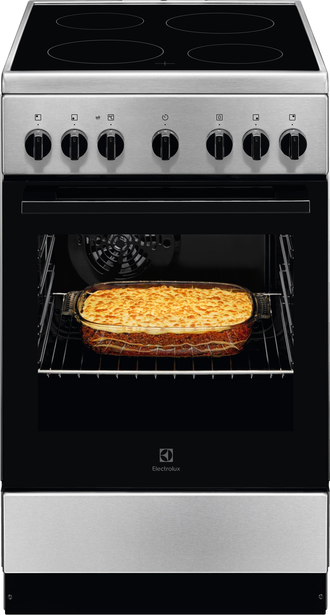Sporák – elektrický, sklokeramická varná doska, energetická trieda A, rozmery 85,8 × 50 × 60 cm (V׊×H), 4 platničky, VARNÁ DOSKA: ovládanie pomocou otočných gombíkov, RÚRA: polohovateľné nožičky a rovnomerné pečenie na viacerých úrovniach, programy rúry rýchle predhriatie, gril a spodný ohrev, strieborná farba Varenie bez kompromisovSporák ELECTROLUX LKR540066XKrehké pečivo, dokonale prepečené koláče aj rovnomerne opečené kusy mäsa – systém HotAir zaisťuje rovnomernú cirkuláciu tepla v celej rúre. Konzisten