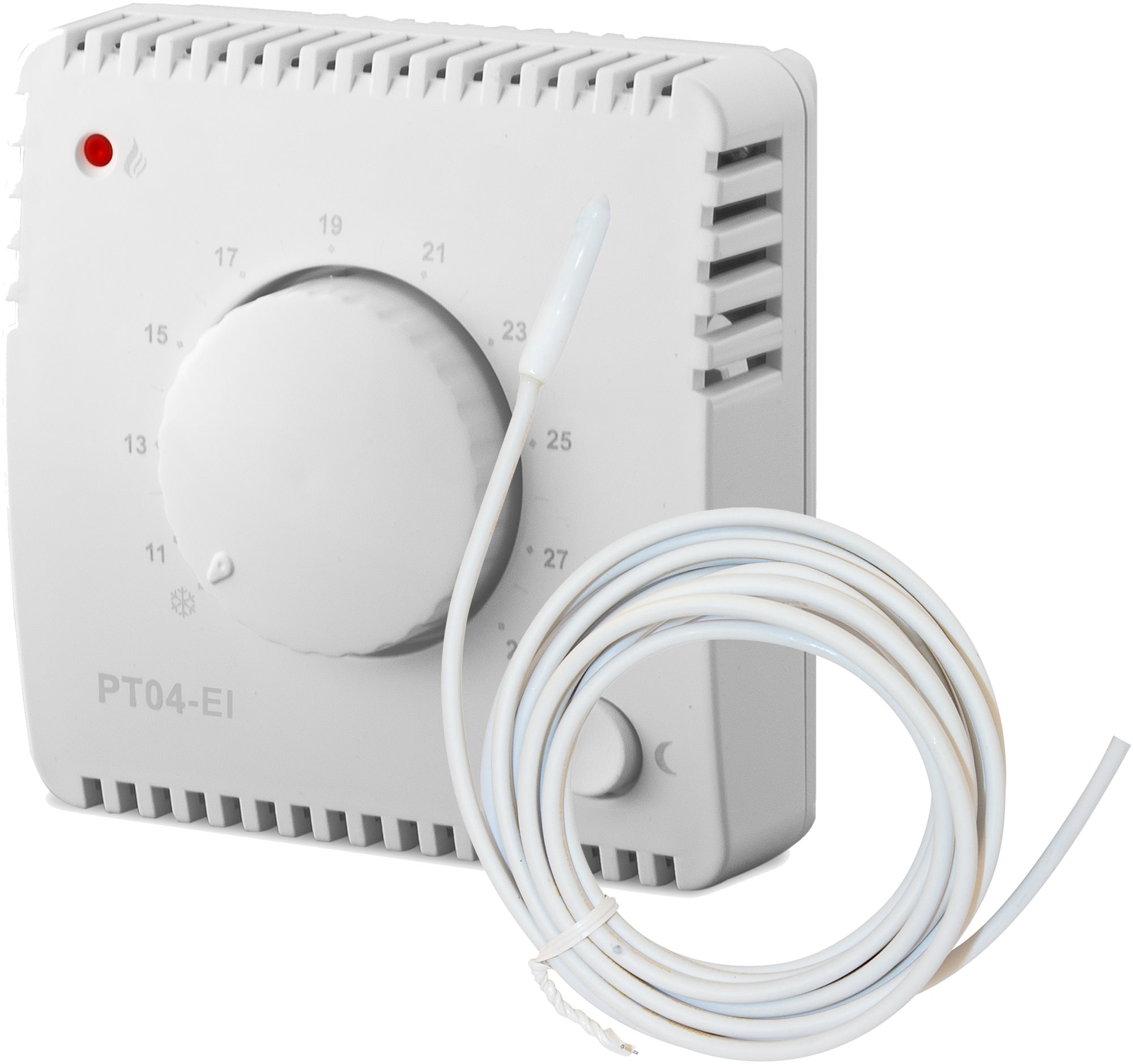Termostat – izbový, denné programovanie, pre podlahové kúrenie, analógový, vstupné napätie 230 V Termostat Elektrobock PT04 je priestorový termostat s automatickým nočným útlmom pna ovládanie elektrických ohrievačov. Umožní vám manuálnu reguláciu vykurovania. Veľkou výhodou tohto termosta