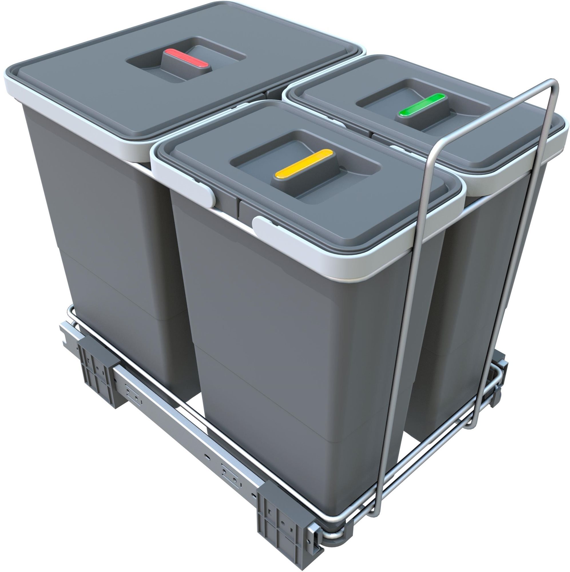 Odpadkový kôš – na triedený odpad, objem 34 l, vstavaný, materiál plast a kov, sivá farba, ručné otváranie, vysúvací, 3 nádoby, rozmery 36 × 30 × 45 cm (V׊×H) Žiadna domácnosť sa nezaobíde bez odpadkového koša. Tento kôš na triedený odpad Elletipi vám pomôže jednoducho rozlíšiť jednotlivé druhy odpadu. Ponúkaný variant má k dispozícii 3 nádoby s celkovým ob