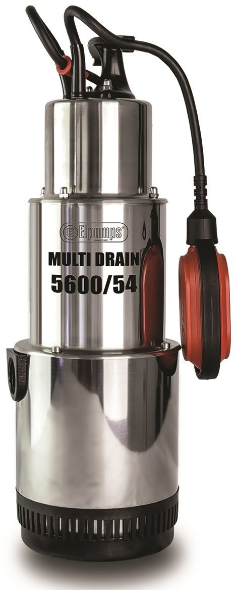 Ponorné čerpadlo do studne – elektrické, napätie 230 V, prietok 5600 l/h, dopravná výška 54 m, maximálna hĺbka ponoru 5 m, dĺžka prívodného kábla 20 m, priemer prípojky 25 mm (1″), vo výbave plavákový spínač, materiál konštrukcie kov, rozmery 49 × 19 × 23 cm (V׊×H), priemer 2,54 cm, hmotnosť 12 kg Vysokotlakové ponorné čerpadlo ELPUMPS MultiDrain 5600/54 je určené na čerpanie vody zo studní, vodných nádrží, zatopených pivníc, šácht a podobne. Stroj disponuje silným elektrickým motorom s výkonom