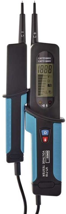 Skúšačka napätia – meria striedavé napätie AC od 6000 mV do 690 V a jednosmerné napätie DC od 6000 mV do 690 V, integrované svietidlo, dvojpólová, digitálna, na domáce použitie, indikátor merania LED, určenie polarity a detekcia fázy, na 2 batérie, batéria súčasťou balenia Praktická skúšačka napätiaEMOS VT-710kompaktných rozmerov je precízne vyrobené zariadenie z vysoko kvalitného materiálu, ktorý zaisťuje prvotriednu bezpečnosť a jednoduchú manipuláciu. Je ideálny niel